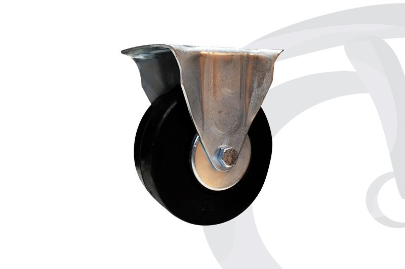 RODAJA INSTITUCIONAL DE HULE 5″ CON ESPIGA ROSCADA, BALERO Y FRENO