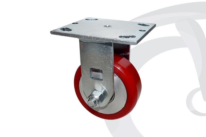 RODAJA DE POLIURETANO 4″ CON PLACA FIJA Y BALERO (HERRAJE REFORZADO)